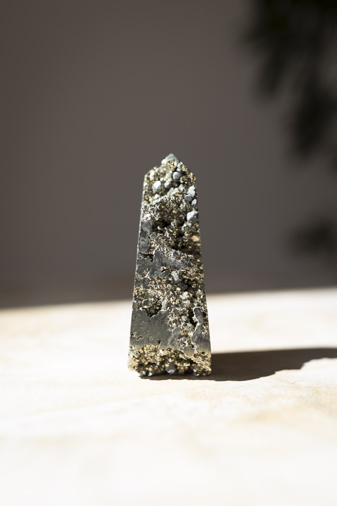 Anvendelse: pyrittens unikke struktur og lysreflekterende overflade skaber en dynamisk energi, der hjælper med at afbalancere og styrke din indre kraft. Med dette tårn i dit nærvær vil du opleve en fornyet følelse af motivation og styrke, samt en beskyttelse mod eksterne energier, der kan forstyrre din balance.