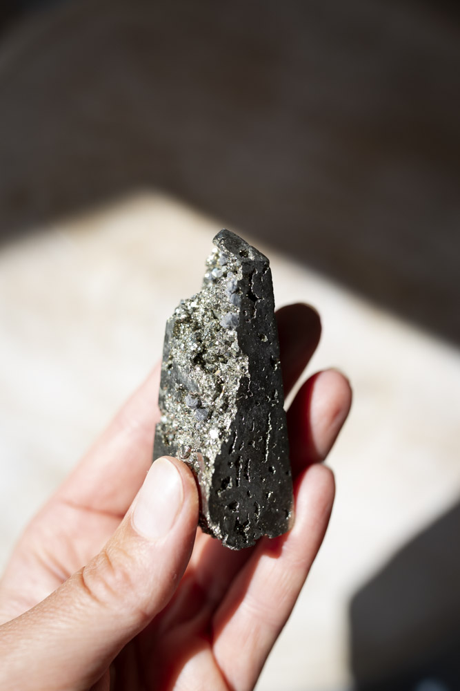 Beskrivelse: pyrit, med sine glitrende, gyldne krystaller, repræsenterer en kraftfuld energi af styrke og beskyttelse. Den er kendt for sine evner til at tiltrække overflod og velstand, samtidig med at den beskytter mod negativ energi og stress. Den fungerer som en stærk energikilde, der fremmer selvtillid og beslutsomhed.