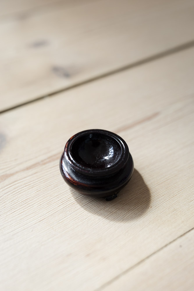 Fin, mørk kugleholder skabt af naturmateriale.